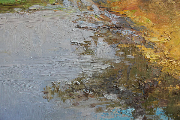 The palette-knife texture adds vitality and immediacy, enhancing the fleeting beauty of the scene — that quiet moment when nature settles, and the landscape reveals its gentle, contemplative depth." Henadzy